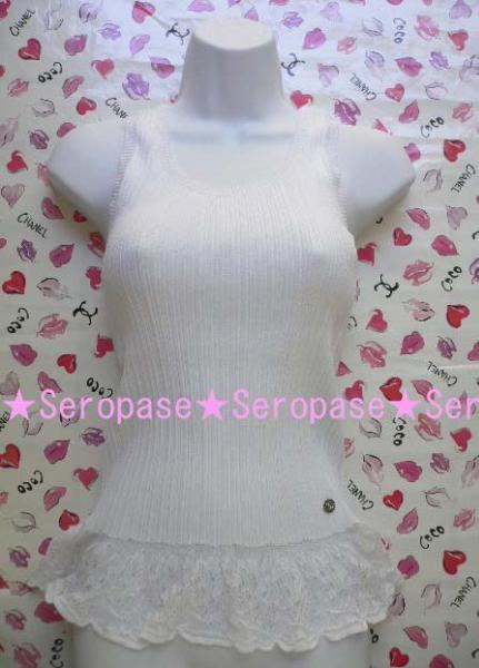 - ★06Pシャネル CHANEL 裾が可愛いニットシャツ白36