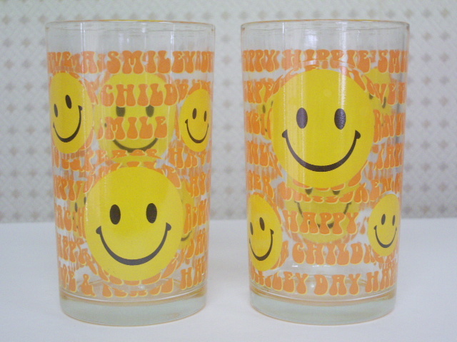 - スマイル ニコちゃん グラス 2個set◆昭和 レトロ◆新品 未使用