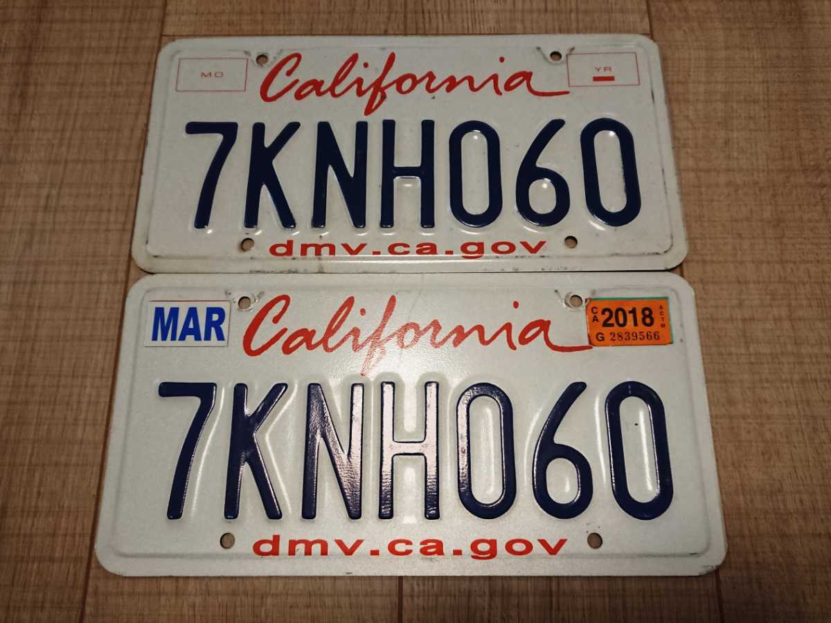 > カリフォルニアナンバープレート 2018 7KNH060 USDM stance truckin lowrider 北米 アメリカ ライセンス フレーム ペア