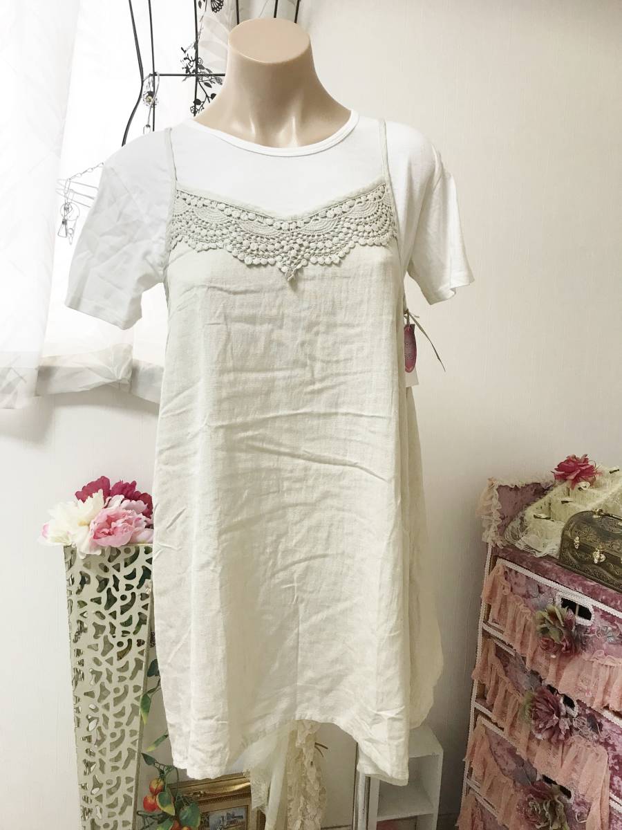 - レディスMサイズ:Pyumosso◆2枚でお得!ステキにお手軽コーデ★アンサンブル*半袖シャツ&キャミワンピース