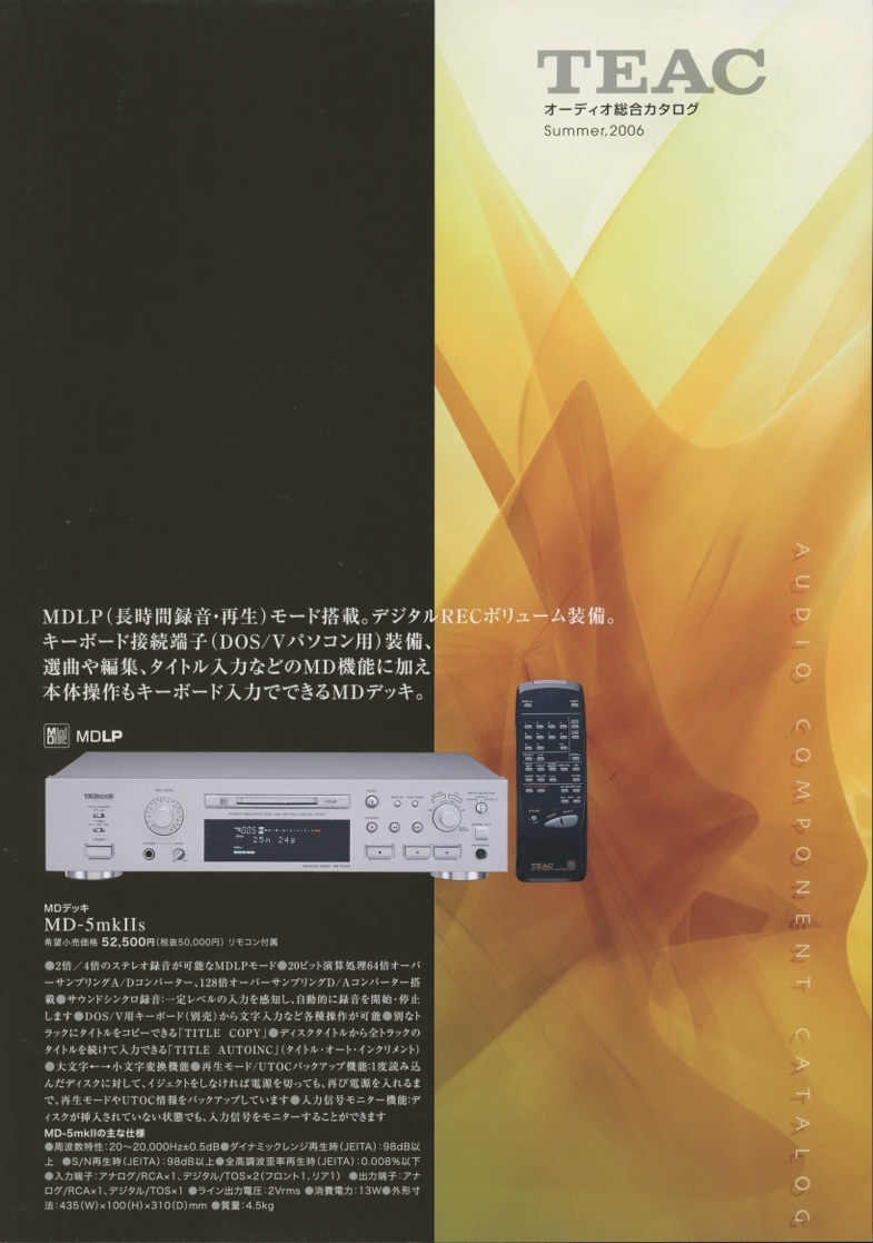 - TEAC 2006年8月オーディオコンポーネントカタログ ティアック 管2943