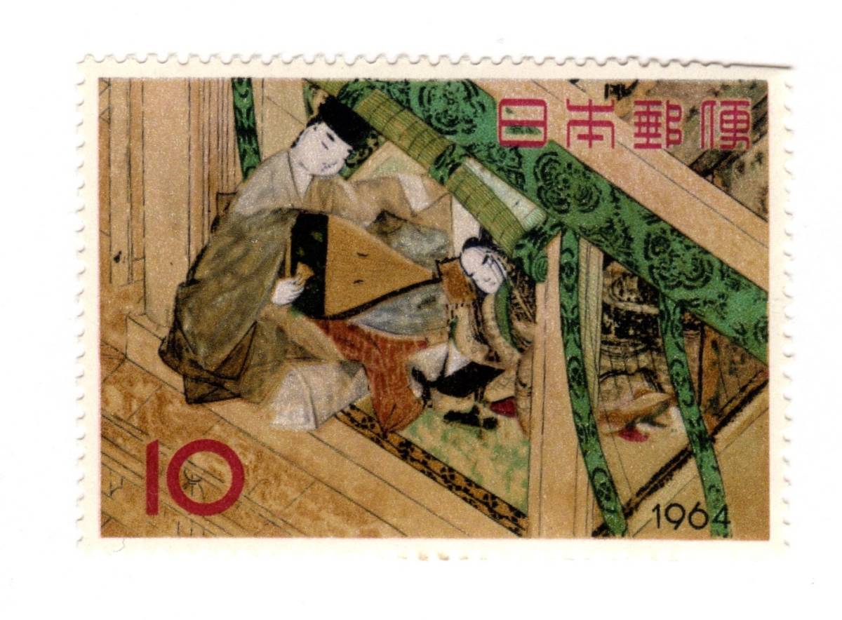 > 昭和39年1964「切手趣味週間/宿木(やどりぎ)・源氏物語絵巻」10円切手・未使用【送料無料】「熊五郎の切手」00800296