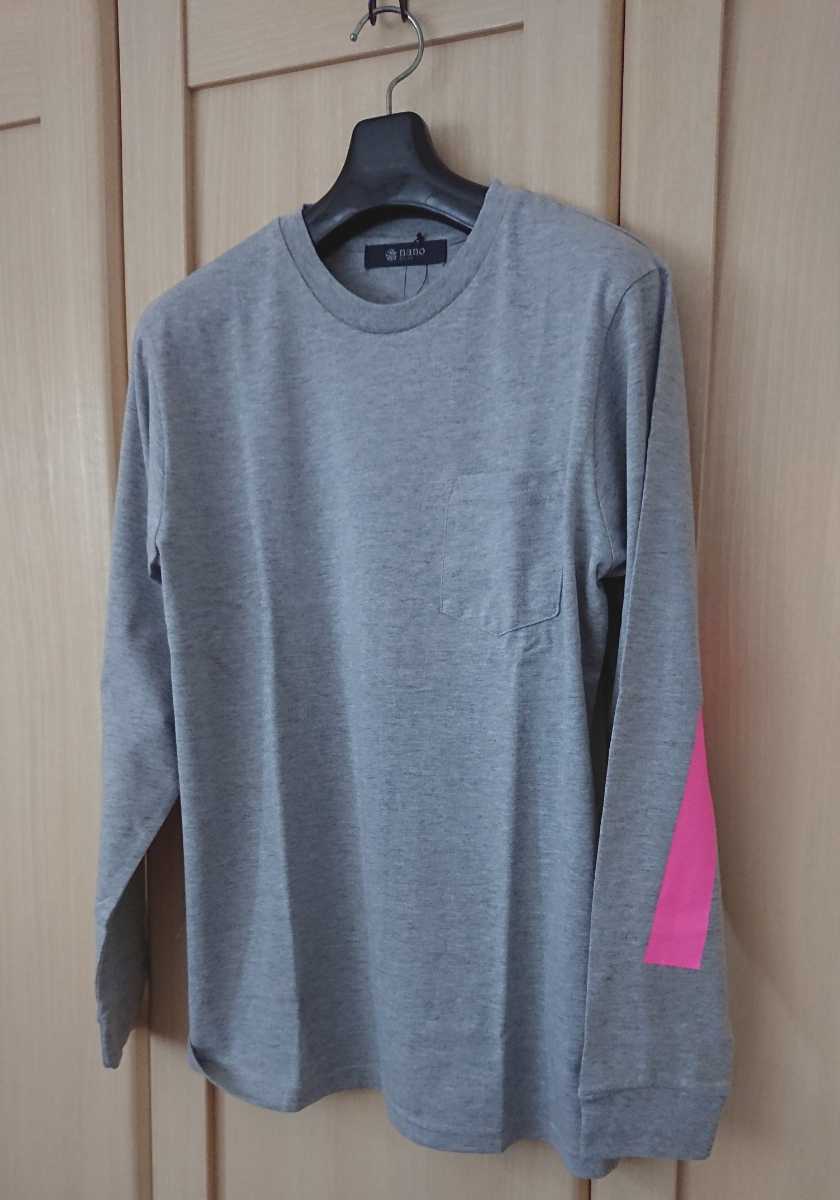 - タグ付 nano・universe メンズS ナノユニバース ピンク スリーブライン 長袖 Tシャツ カットソー グレー 未使用 新品