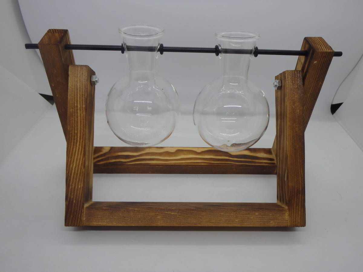 - かわいい 吊り下げ式 ガラスプランター 水耕栽培 ガラス瓶 木枠付き フラスコ型プランター