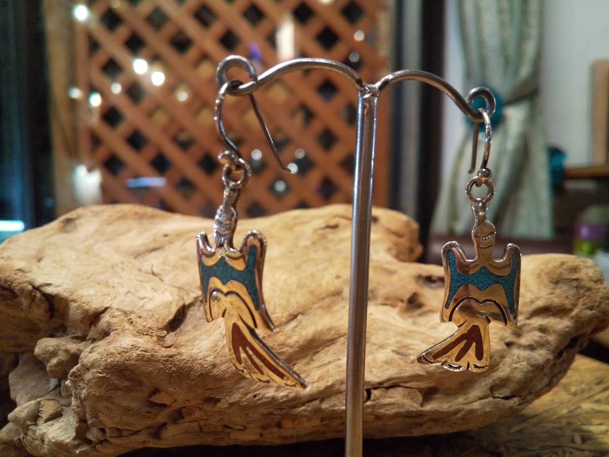 - シルバー925、ファイヤーバード,バード,鳥,ピアス,インレイ,天然ターコイズ,インディアン,ネイティブ