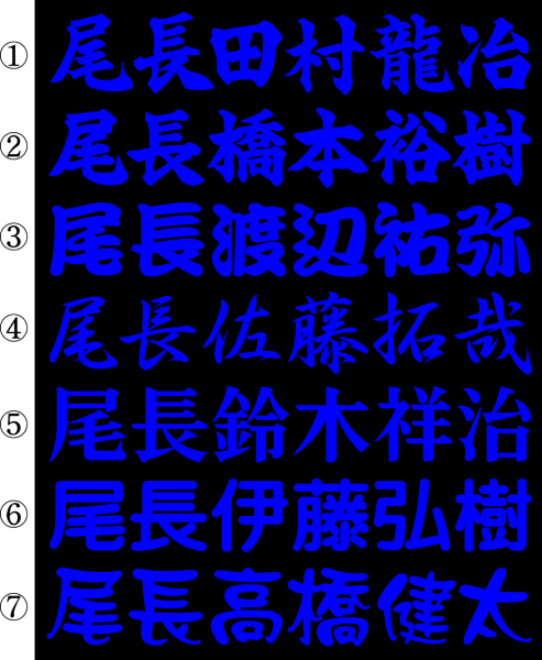 - 尾長 ネームステッカー 青 30センチ 2枚組