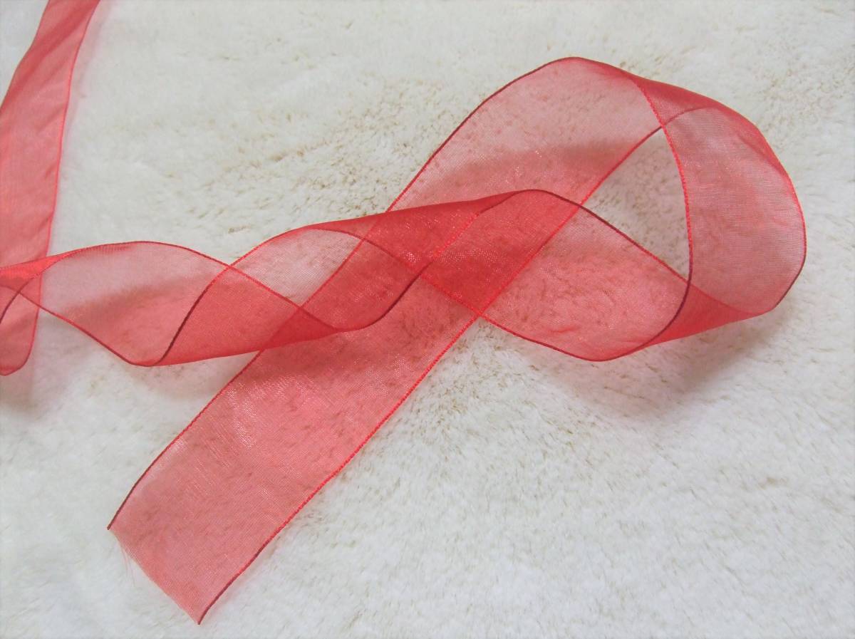 - 未使用★ オーガンジーリボン 赤 4㎝×2m ヘアアクセ 髪飾り 衣装材料 ハンドメイド 手作り材料 手芸用品 洋裁 裁縫 バック材料 資材 和装
