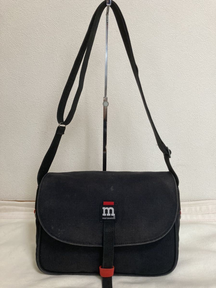 > 【激安】marimekko マリメッコ 帆布ショルダーバッグ 黒 リフレッシュ済 使用感有 激渋 使えるサイズ 激安!