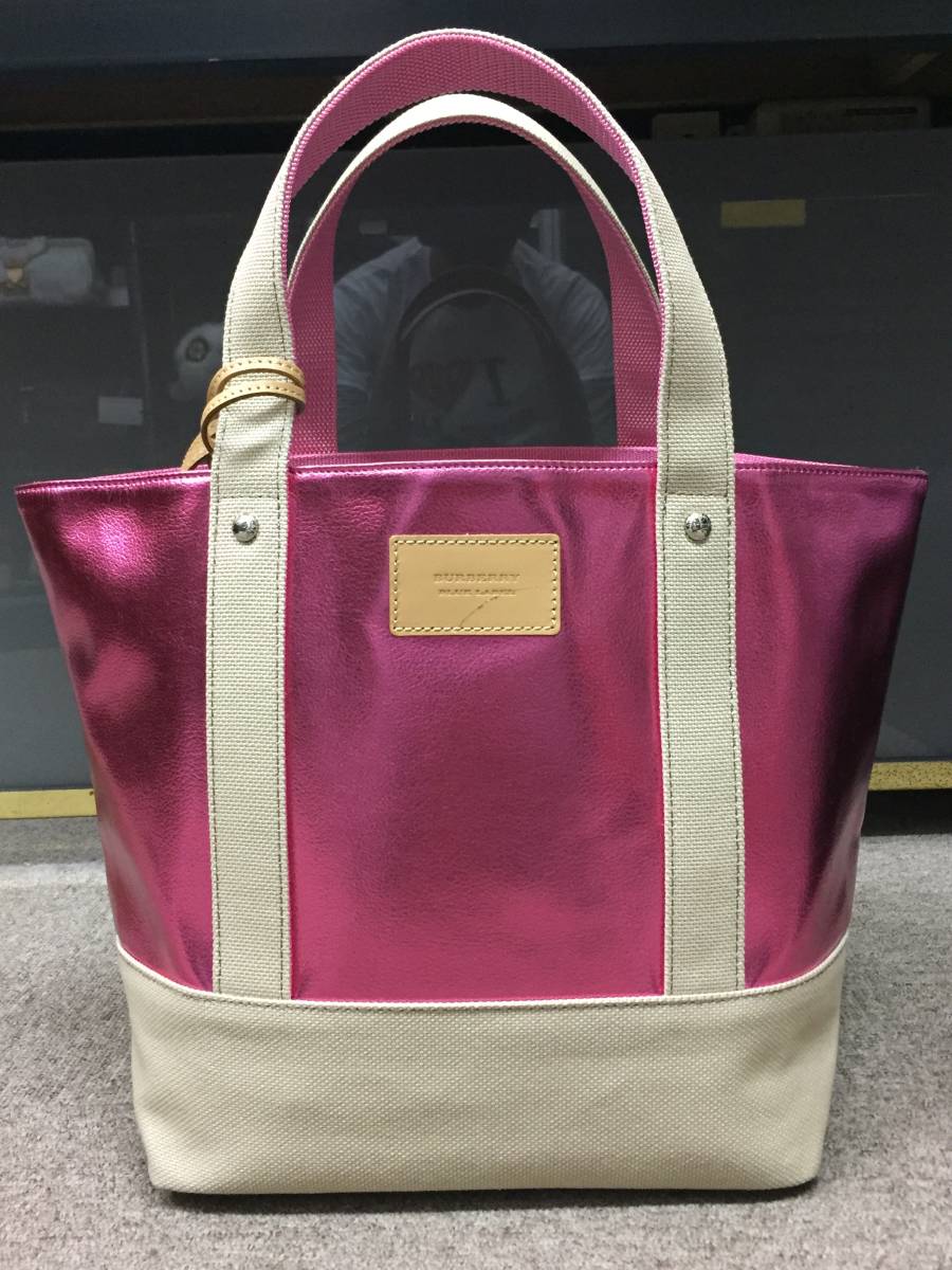 - 美品!格安!バーバリー ブルーレーベル メタリックピンク コーティングレザー キャンバス トートバッグ ポーチ付き