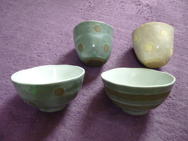 - 茶碗 飯碗 湯呑 ピンク ブルー 夫婦 2客 2組セット 日本製