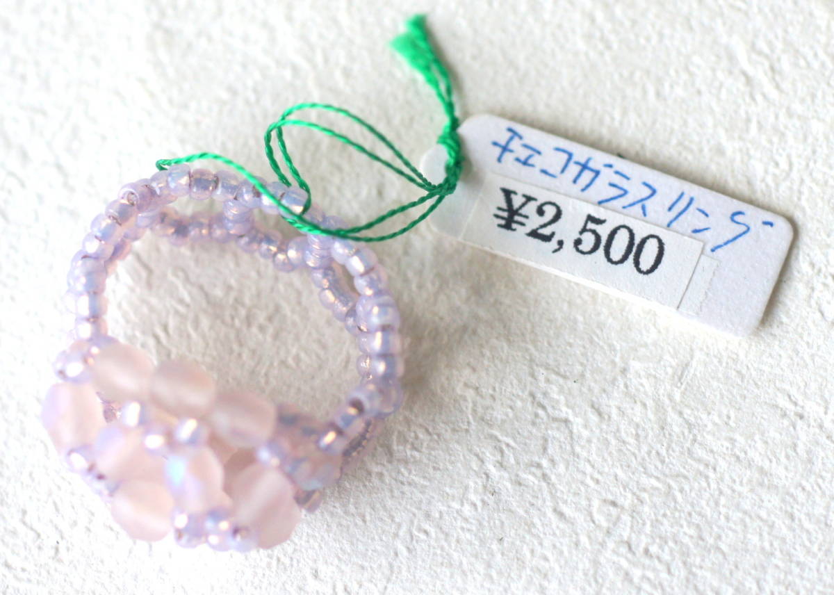 - 淡い紫ピンク系 チェコガラスビーズのリング 定価2500円