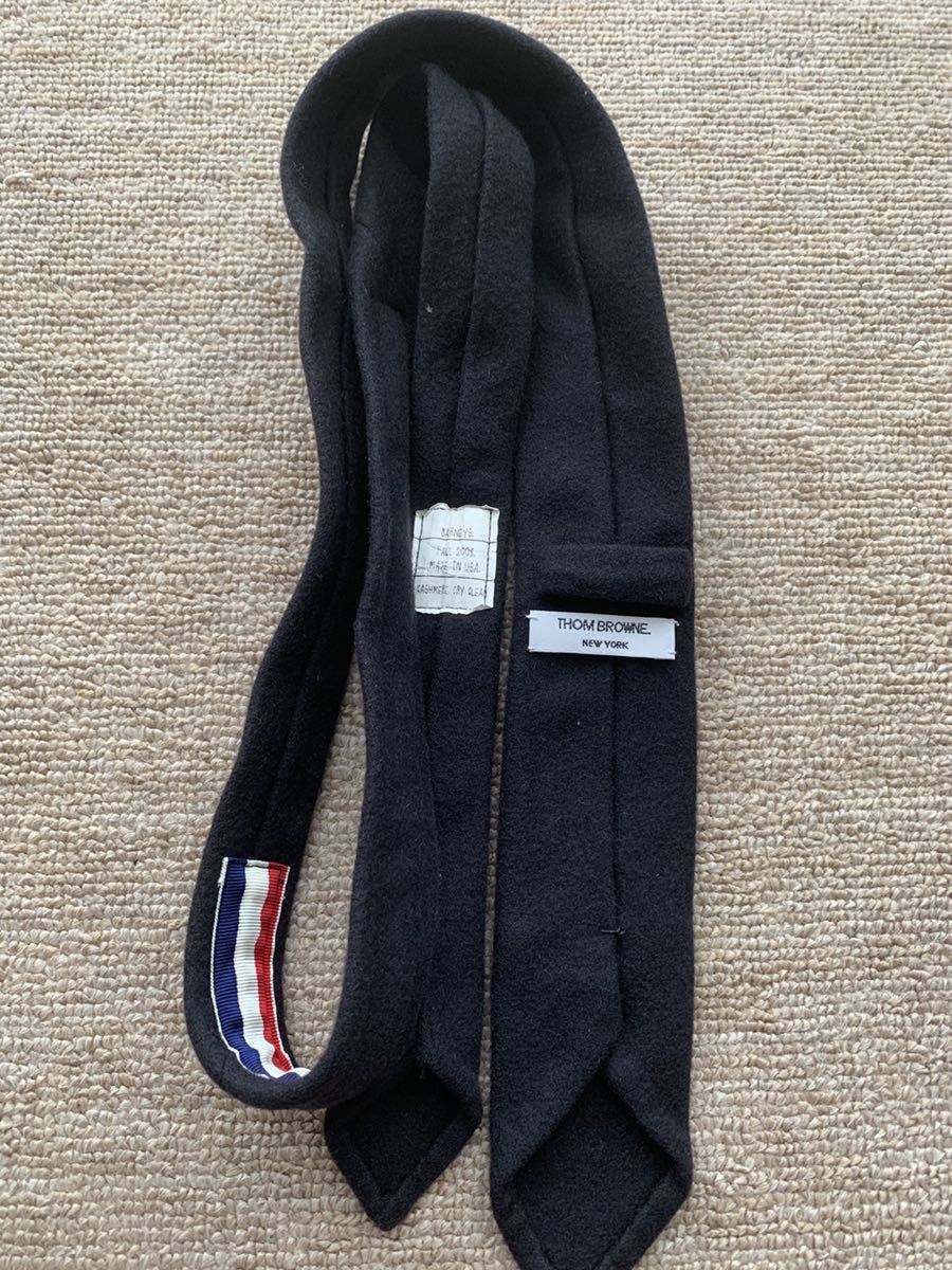 - トムブラウン 初期レア 厚手 フランネルタイ 黒 thom Browne wool ネクタイ