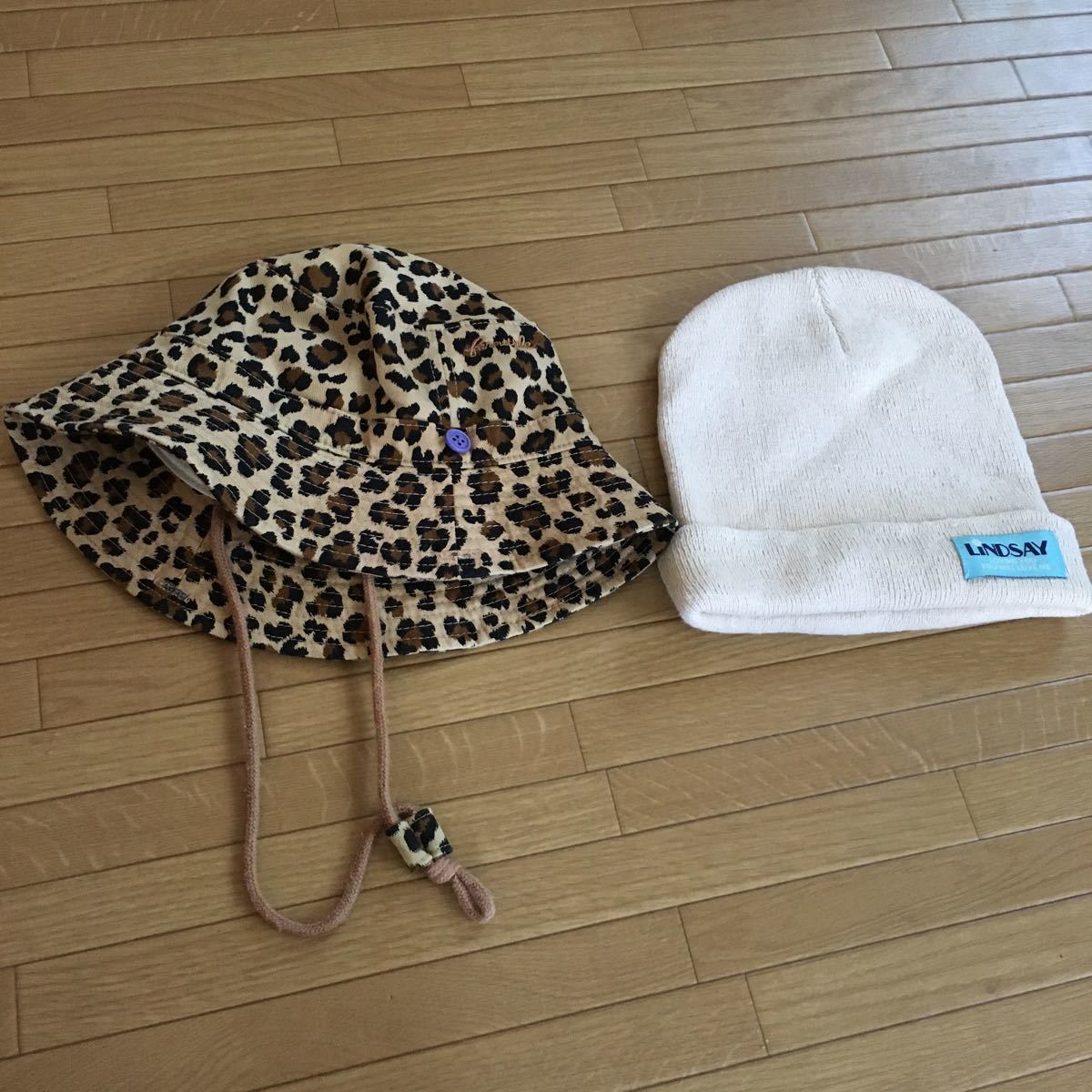 - ニットキャップ 帽子 2個セット 小学生低学年用 数回使用のみの極美品 豹柄