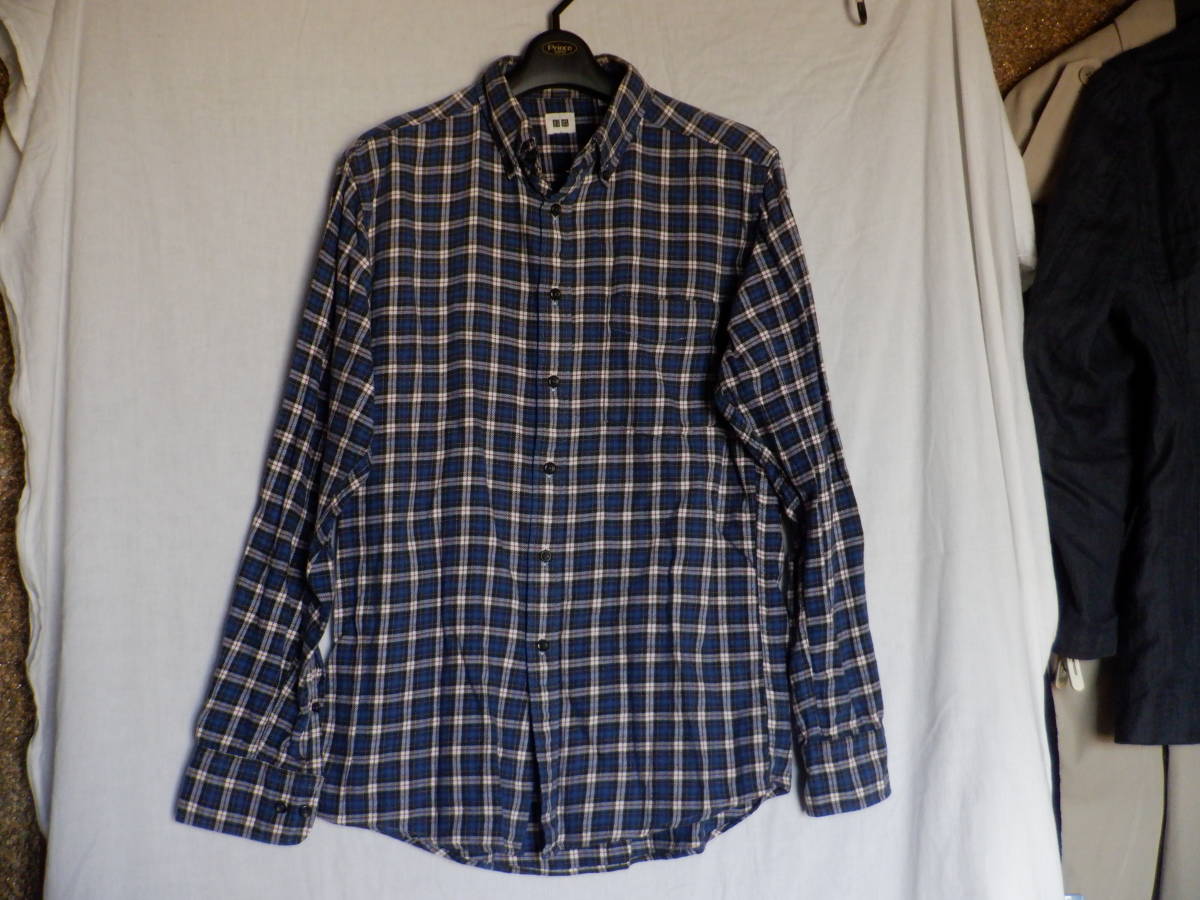- ユニクロ 長袖 ネルシャツ ブルー系のチェック柄 Mサイズ