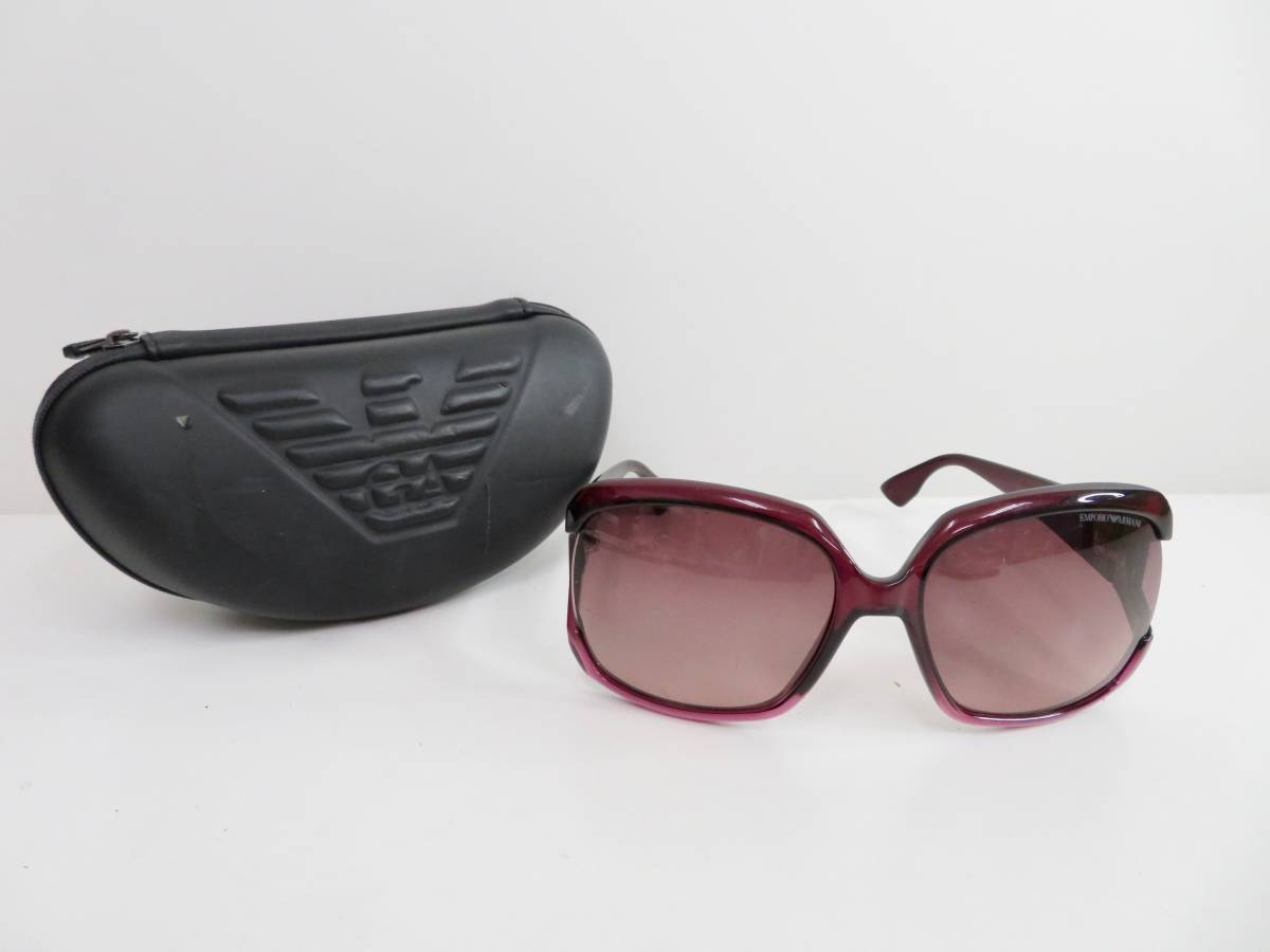 - ◆EMPORIO ARMANI エンポリオ アルマーニ サングラス ピンク 紅色 メガネクリーナー付 ロゴ入 眼鏡 ファッション 極美品 管理2010 A-16