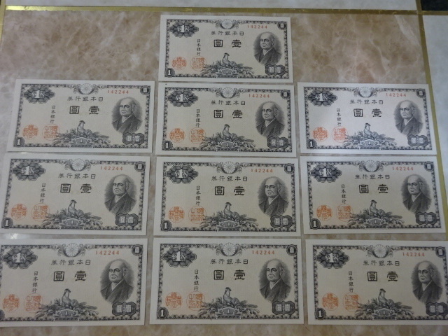 - ★ 日本銀行券A号1円 二宮1円 榎町印刷工場(44) 未使用 10枚 ★ No.44