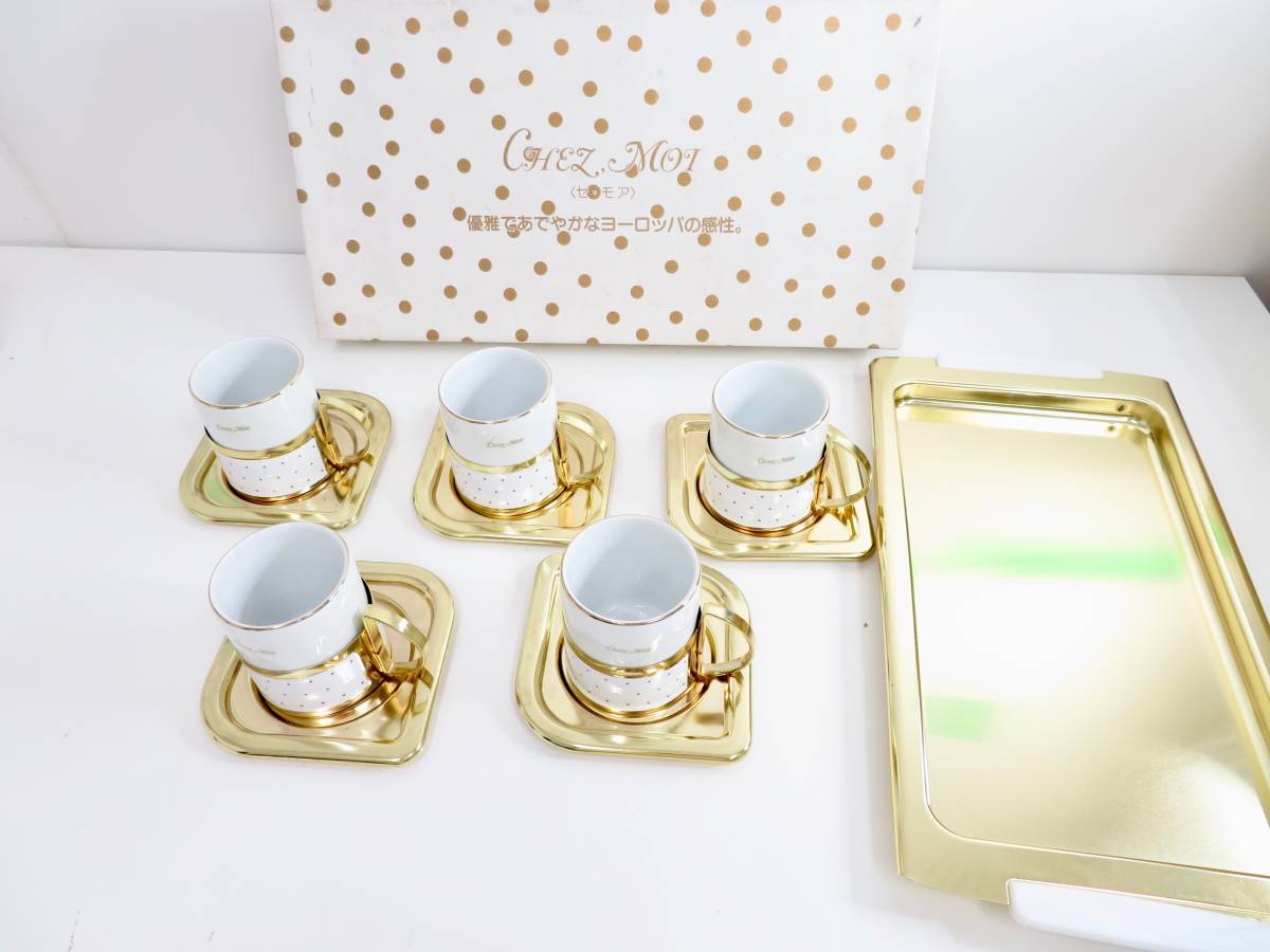 - 未使用品・昭和レトロ◆CHEZ MOR セ・モア コーヒーカップセット ティーカップセット ソーサー付 お盆付 6客セット 管理2010 V-10