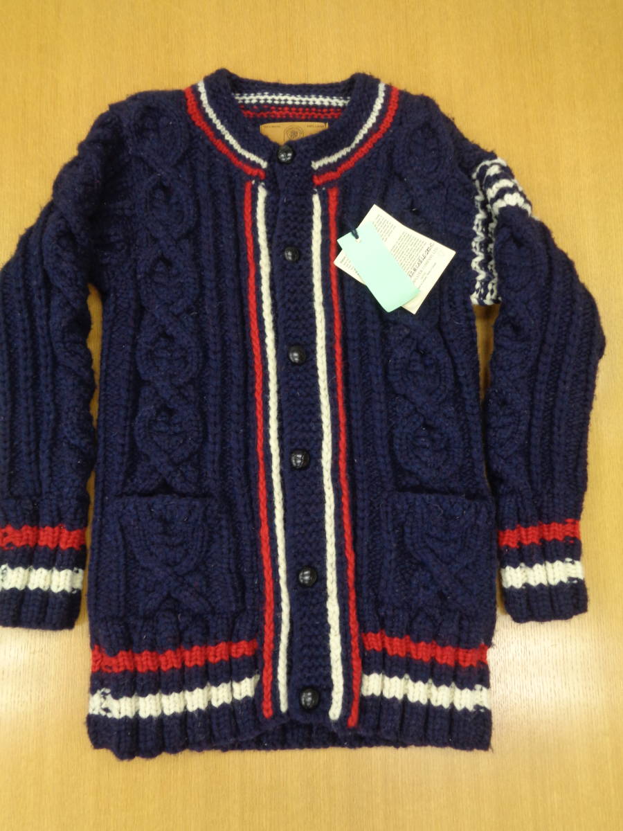 > 半額以下! 定価 ¥78,000 CANADIAN SWEATER カナディアンセーター 特注ノーカラーボタンロングカウチンセーター ウール NAVY Size:38