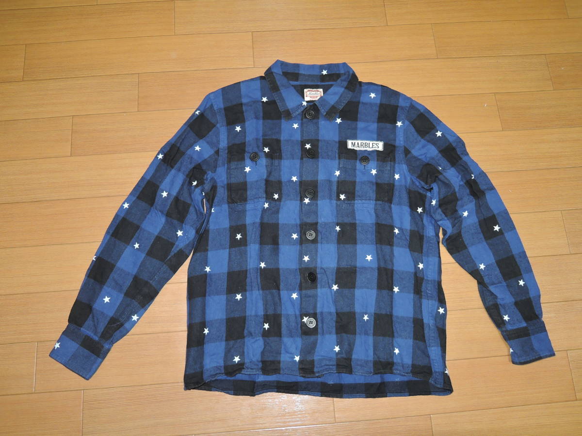 - MARBLES マーブルズ 星★ドット柄 チェックシャツ M 青黒 長袖 ブロック