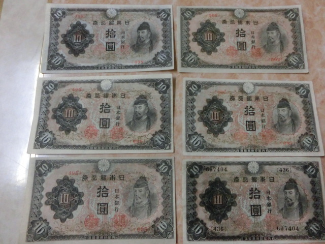 - エラー品 ★ 不換紙幣10円 2次10円・改正不換紙幣10円 3次10円 6枚セット ★ No.860