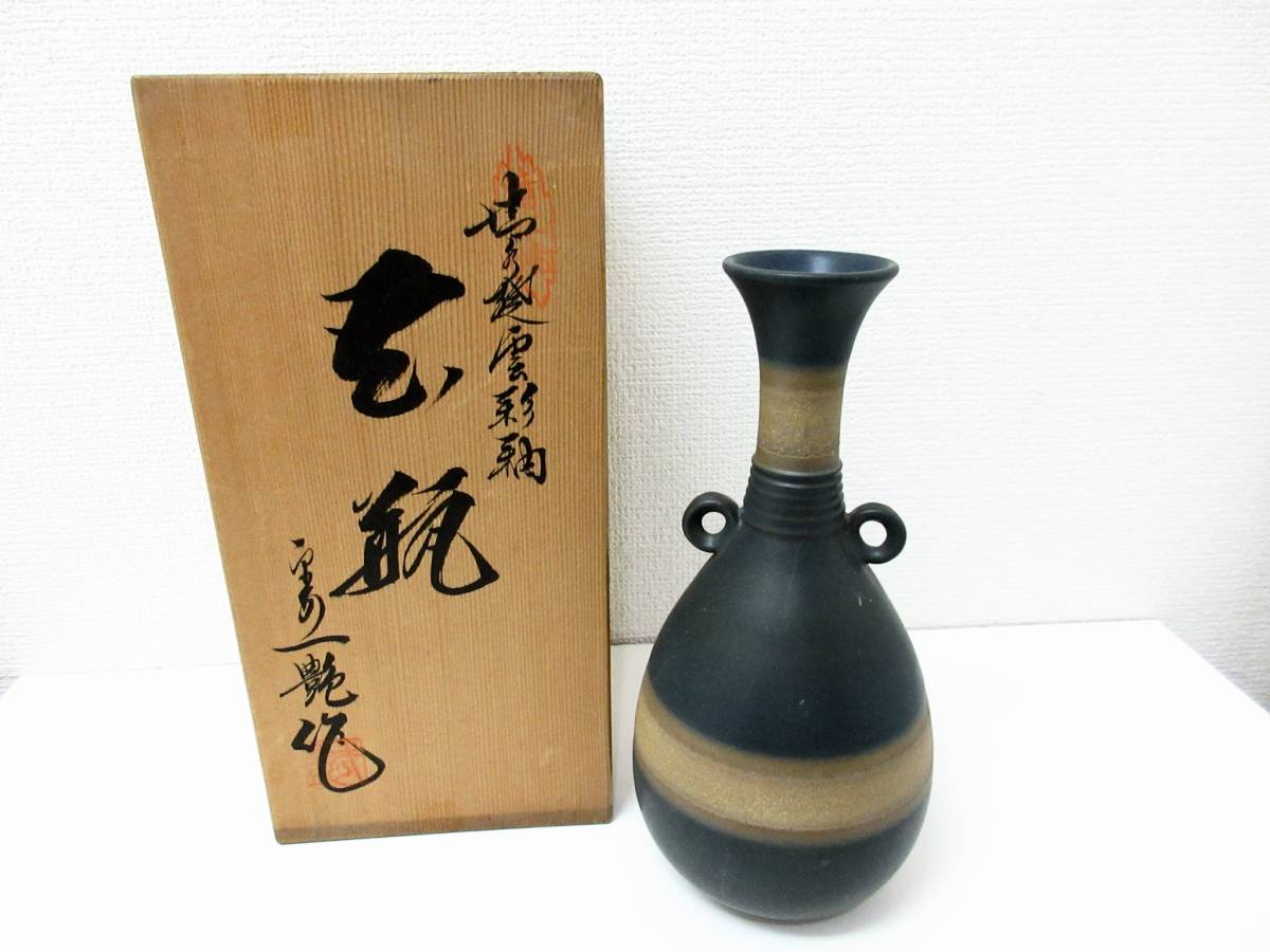 - ▲清水焼 京焼 一艷作 花瓶 花器 雲彩釉 銘あり 木箱入 未使用品 管理2011 Y-4