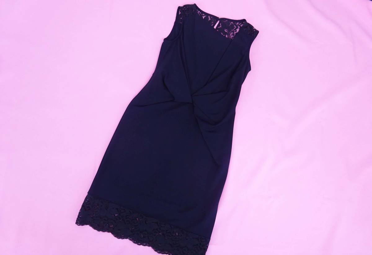 - BARNEYS NEWYORK バーニーズニューヨーク 裾&背中レース クレープジャージワンピース ネイビー ブラック 38