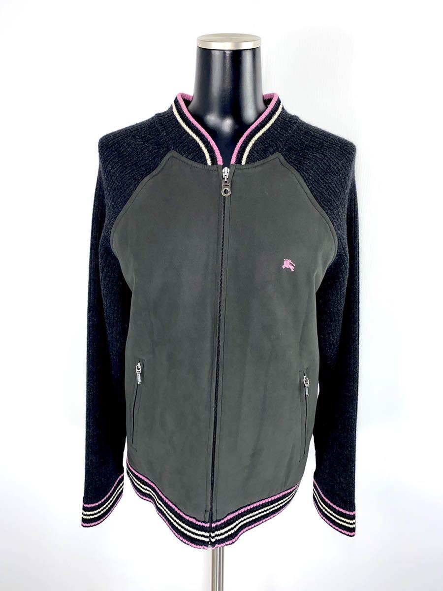 > 1円売切 数回着用 美品■BURBERRY BLACKLABEL■バーバリー ■ホースマーク刺繍■羊毛ニットジップジャケット キュプラ ベロア■サイズ2