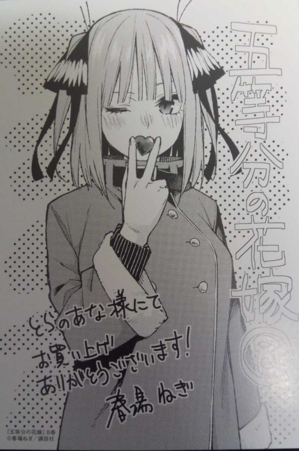 - 五等分の花嫁 特典イラストカード 8巻 中野二乃 とらのあな