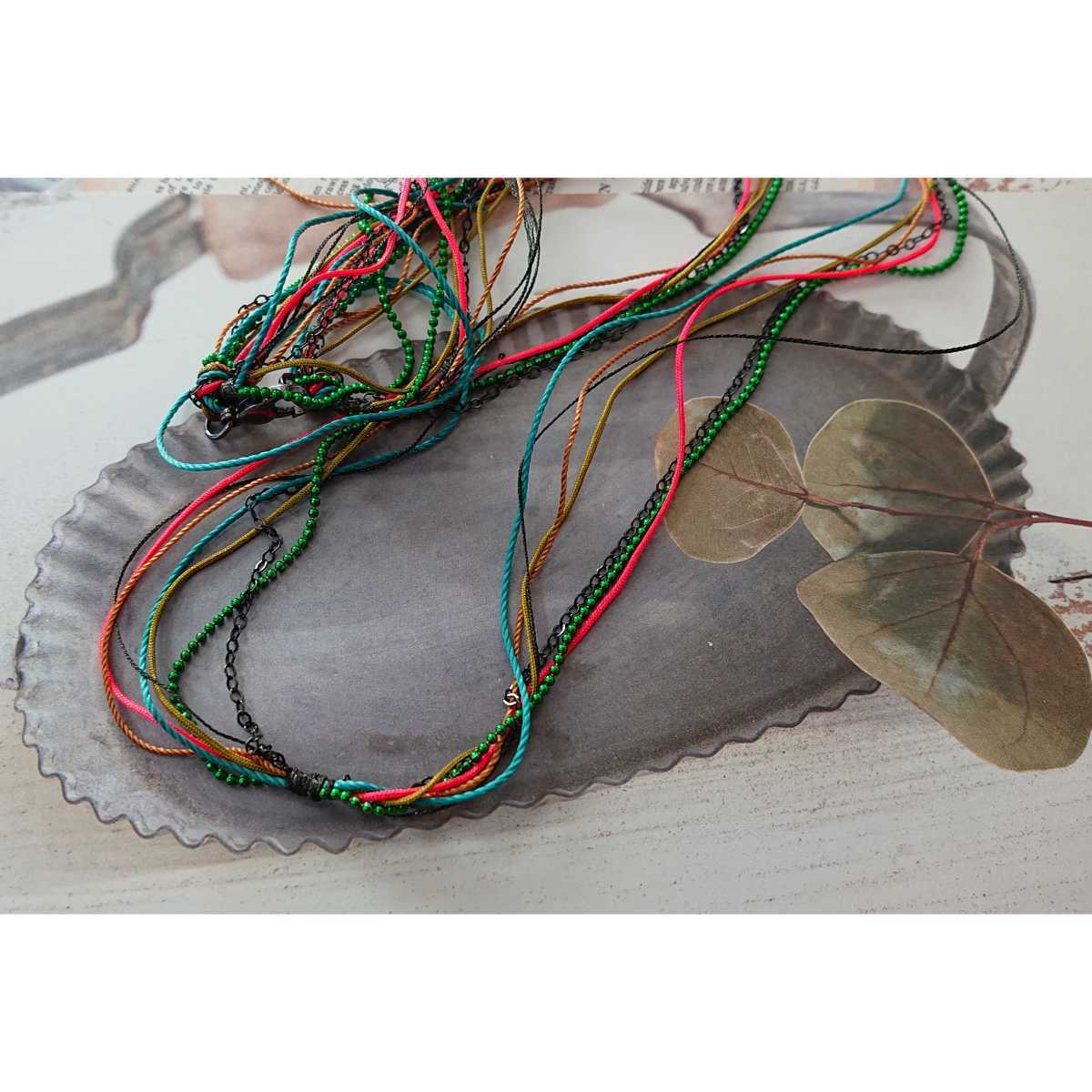 - □個性的&存在感□カラフル紐&チェーンの7連ネックレス□