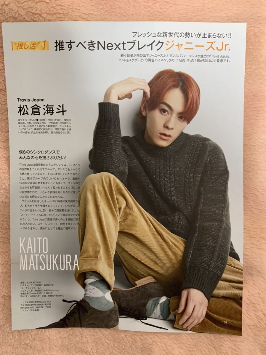 - ジャニーズJr. Travis Japan 松倉海斗 BAILA 2021年 2月号 切り抜き 1P