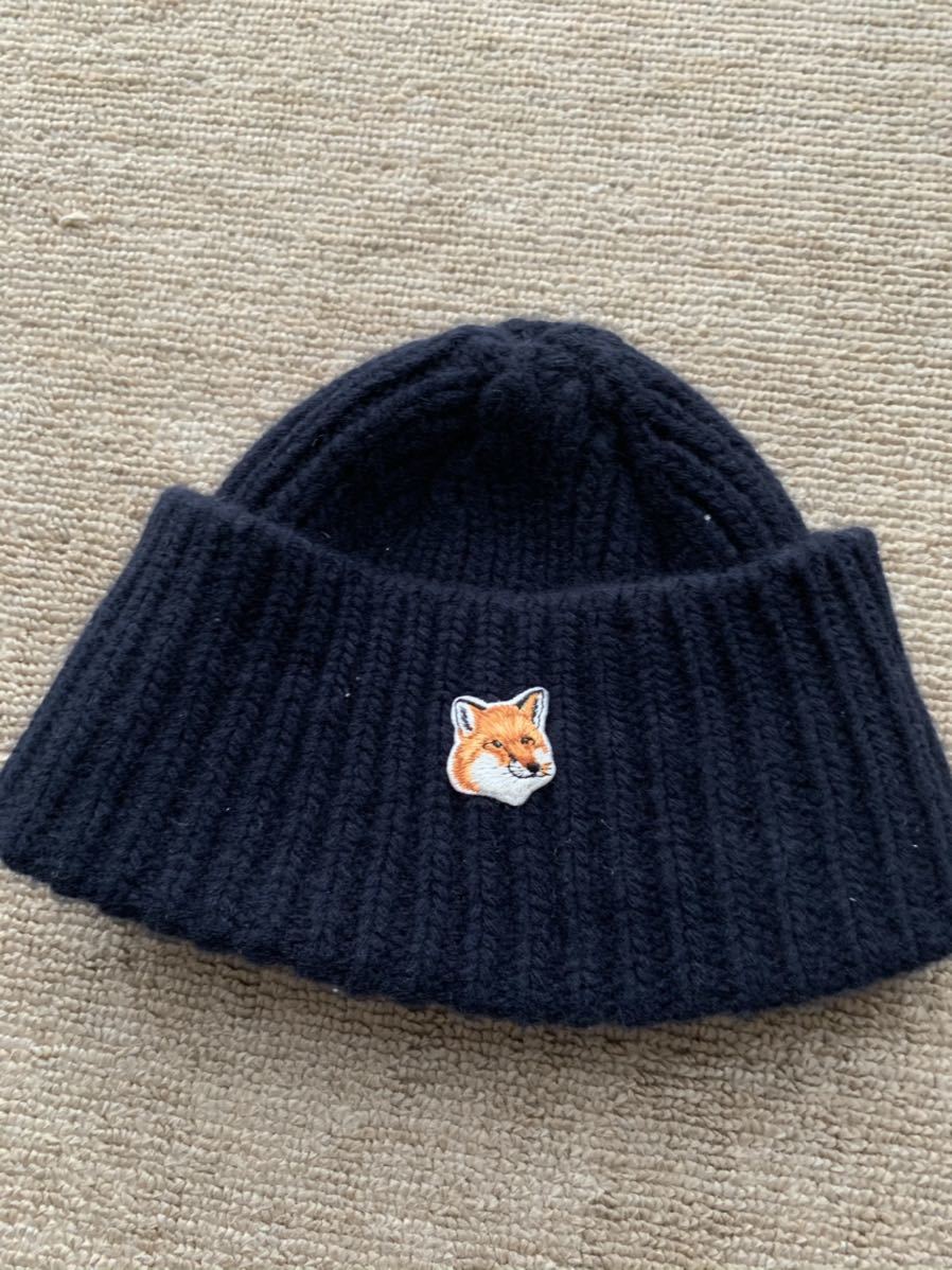 - キツネ ニットキャップ kitsune ウール ネイビー イギリス製