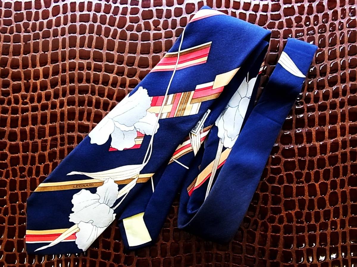 - ○E056R●USED並●レオナール【花】ネクタイ