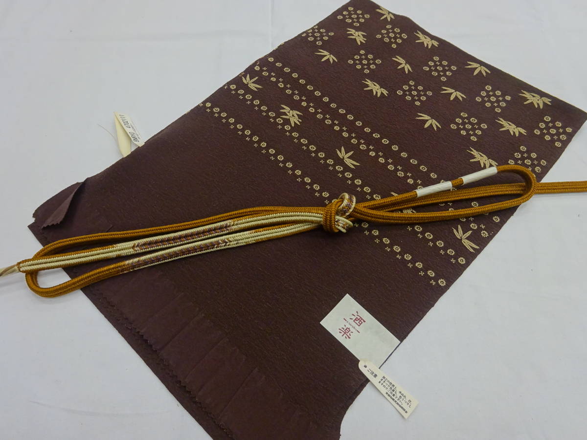 - 新品・未使用★正絹★洒落用・帯締め・帯揚げセット★こげ茶色地です
