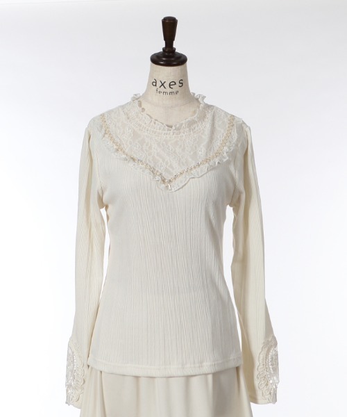 - 431◇袖モチーフレースリブプルオーバー 生成り キナリ axes femme アクシーズ ファム TS31X269