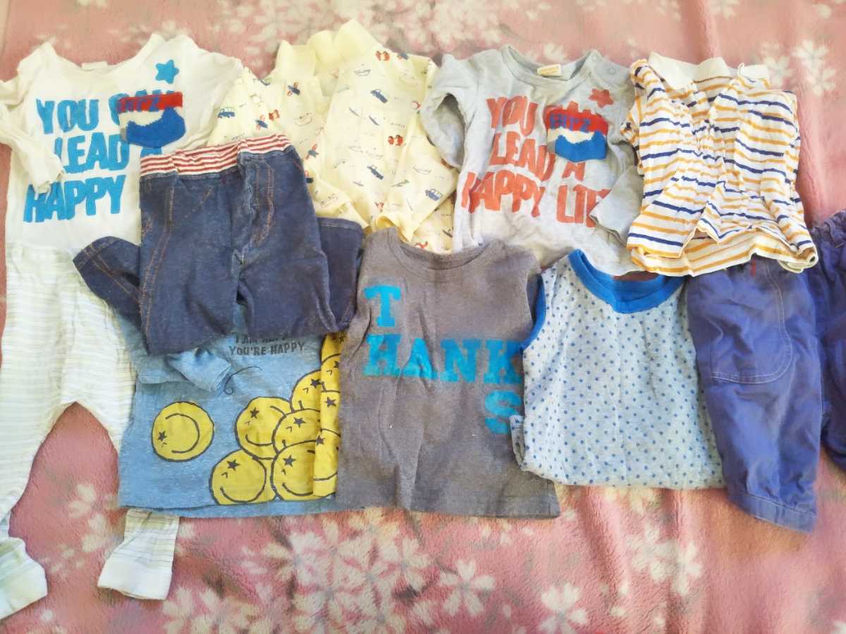- 子供服 男の子 サイズ90 中古 キッズ服 幼児 ベイビー ロンT 長袖 セット価格 バラ売り可能 スマイリー ドット 水玉 ボーダー