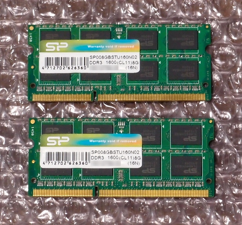 - Silicon Power SP008GBSTU160N02x2枚 16GB(8GBx2) PC3-12800(DDR3-1600) 204pin SO-DIMM 2枚組