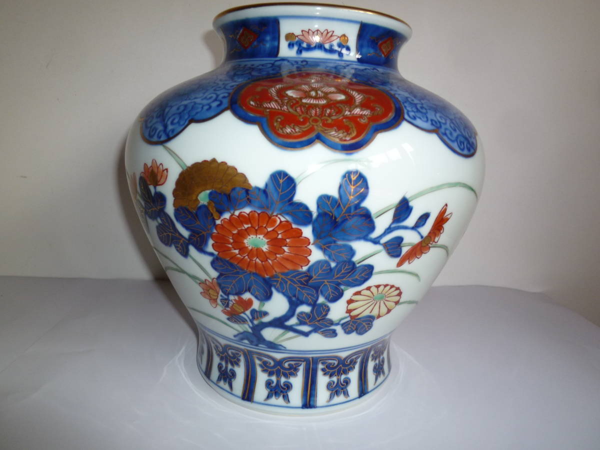 - 茶道具 金欄手様式菊牡丹絵花瓶|有田焼 陶芸作家 勝山作 大花瓶 高さ26cm 金欄手 飾り花瓶 未使用 美品