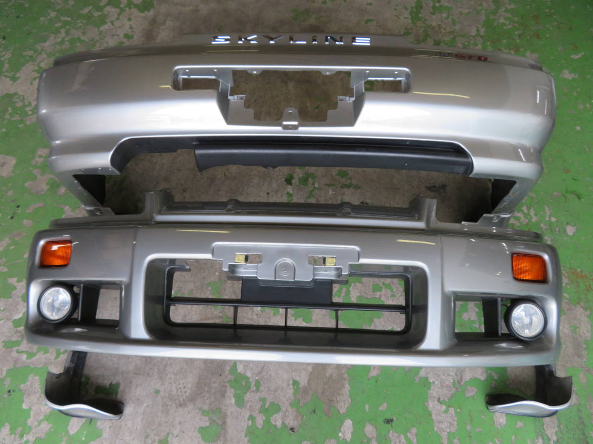 > 日産 ニッサン ER34 スカイライン 2D フロントバンパー リアバンパー マッドガード 2点セット フォグランプ&ウインカー付 シルバー S959