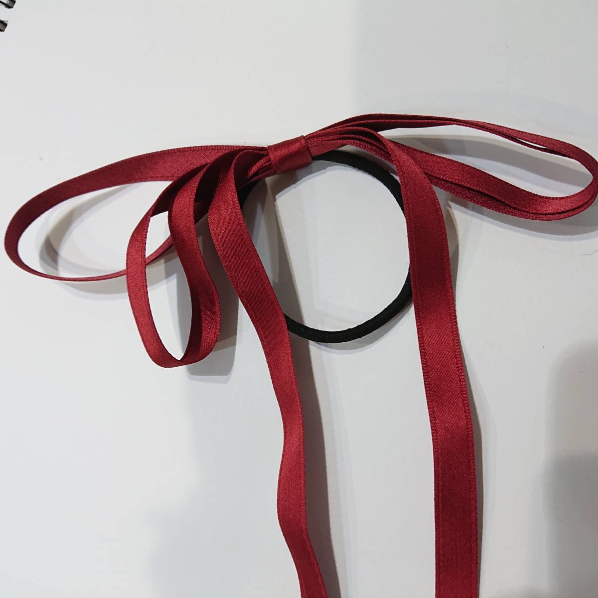 - リボンヘアゴム 2個セット ワイン色 パール付き