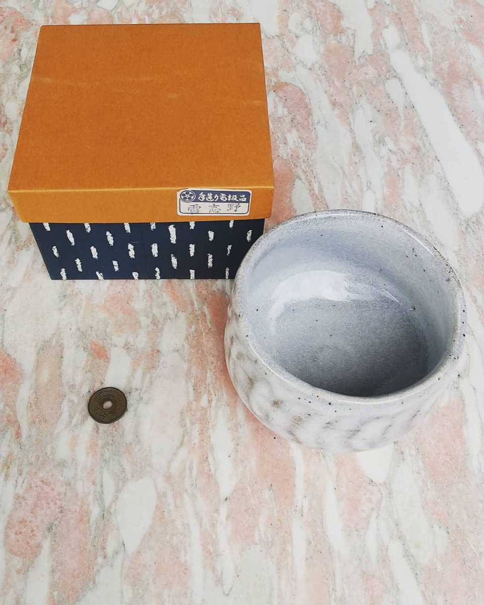 - 丸正加藤製陶所 圓正窯 加藤正山 雪志野 抹茶碗 紙箱 【直径11.5㌢高さ8.5㌢重さ400㌘】未使用