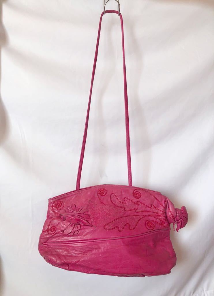- USAアメリカカルフォルニア製ヴィンテージキャンディーみたいな形が可愛い本革レザーポシェット♪ピンク