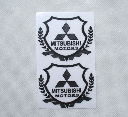 > 【新品・即決】ミツビシ 三菱 MOTORS グレー ステッカー 5.6cm×4.8cm 2枚 給油口 ボディ ガラス