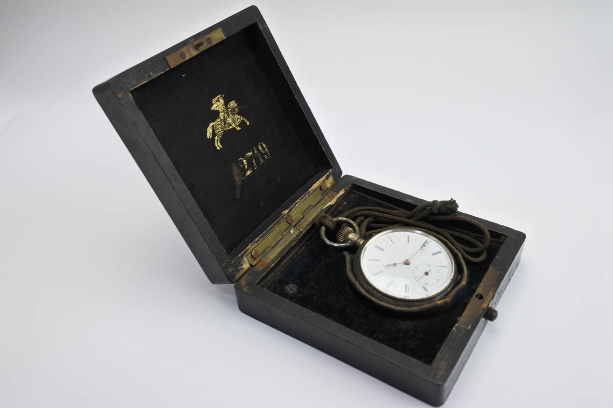 - ☆☆☆ コロン商会銀製 手巻懐中時計 木製箱付 銀800刻印あり 極珍品