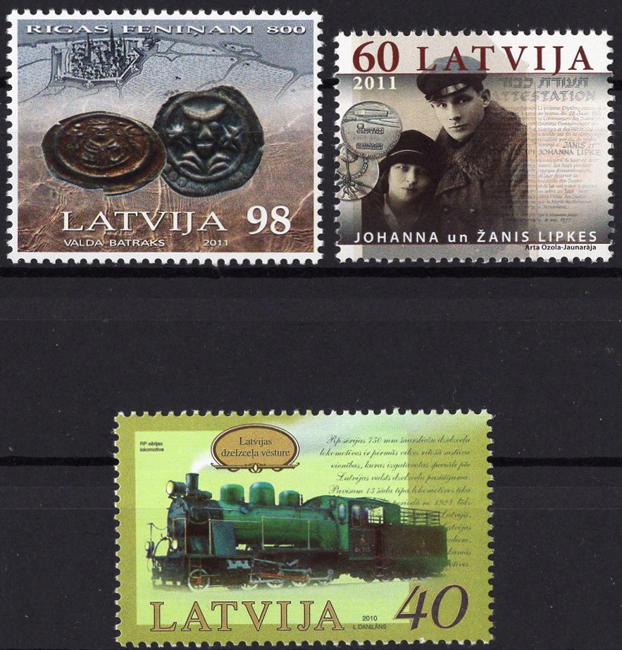 > ★2011年 ラトビア- 「最初のコイン800年」1種完+「第二次世界大戦中ユダヤ人の救助者」1種完+「機関車」1種完 未使用(MNH)★YH-522