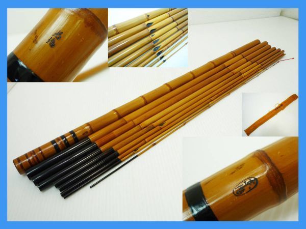 - 骨董品 光作銘 東作? 銘竿 在銘 銘有 刻印 和竿 竹竿 9本継 艶々絶品 美竿 渓流 袋 名作 レア コレクター マニア 超稀少作品 お買得 必見⑩