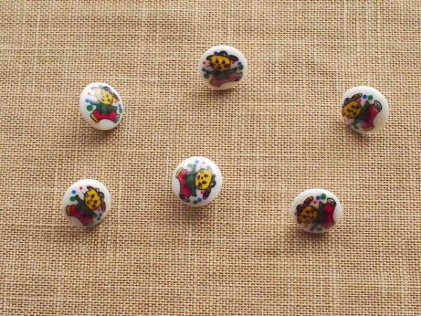 - 昭和レトロポップボタン*帽子うさちゃん6個セット☆リメイク