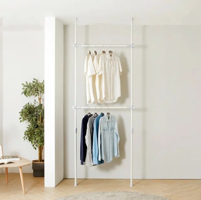 - スリム2段ポールラック 突っ張りタイプ 室内用 省スペース
