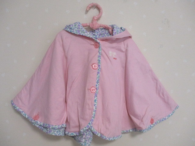 > Ω ミキハウス Ω★70-90㎝★ 可愛いリバーシブルベビーケープ ピンク・花柄 10503