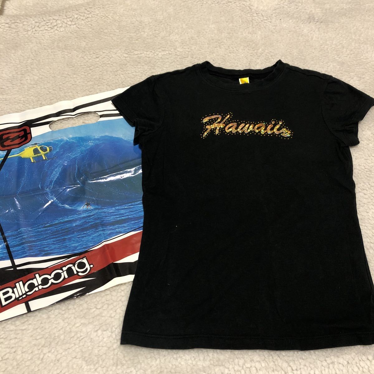 > ★美品 1回のみ着用 ショップバッグ付 ハワイ限定 ビラボン Tシャツ レディース S(日本M)Billabong ブラック ラメ入り 半袖 ビンテージ