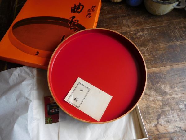 > 昭和レトロ まげわっば 曲げ 山桜 31X28CM NO201 丸盆尺 秋田杉 未使用 日本製 sakura made in JAPAN AKITA